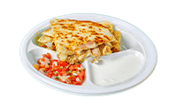 flour tortilla, cheese, crema, and pico de gallo on the side